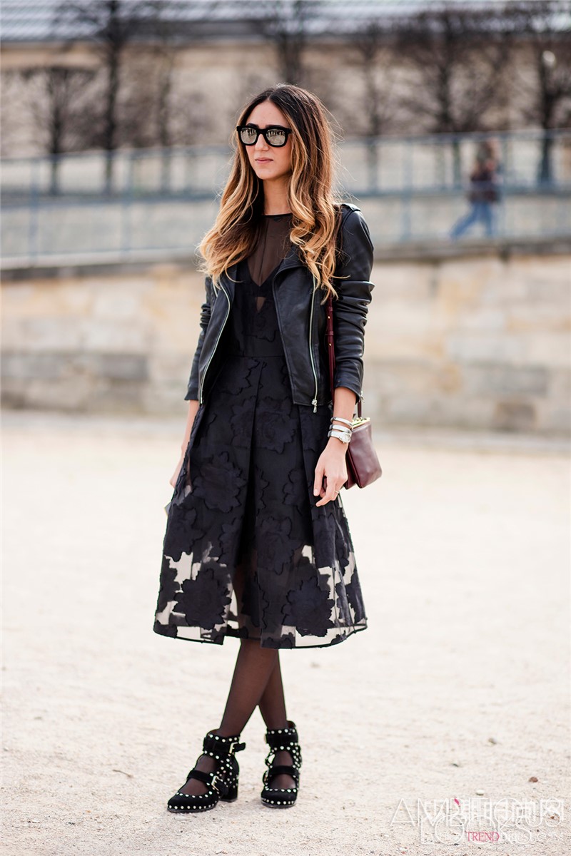 干練的西裝小外套,調(diào)配修身的蕾絲吊帶裙,刻畫(huà)時(shí)髦高雅的OL氣質(zhì), 黑與白的調(diào)配很經(jīng)典也很時(shí)髦。