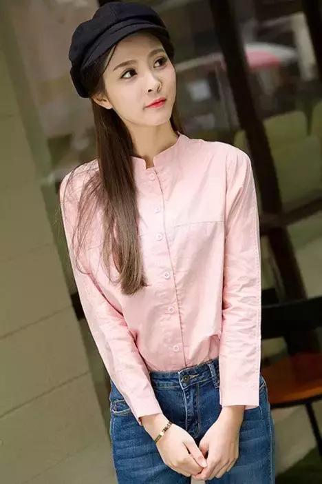 春裝新款女裝純色蝙蝠長袖立領襯衫