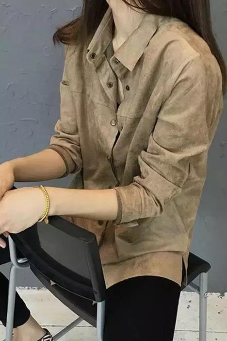 2017春季新款寬松銅扣麂皮絨襯衫