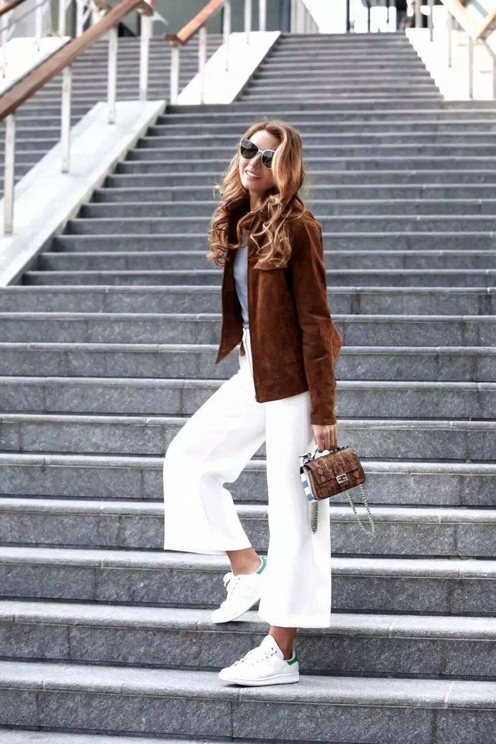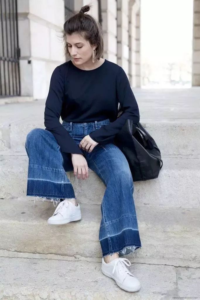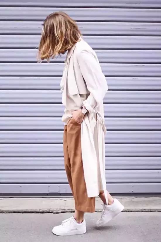 在九分褲中,闊腳褲和運動鞋的搭配,讓人看起來時尚又舒適。