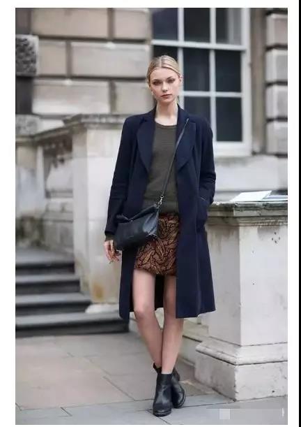 這種搭配的好處在于,可以遮住腰部贅肉感,大衣的挺括感帶來品質的感覺,半身裙拉長了視覺比例,搭配簡單,卻讓你看起來時尚嫵媚。