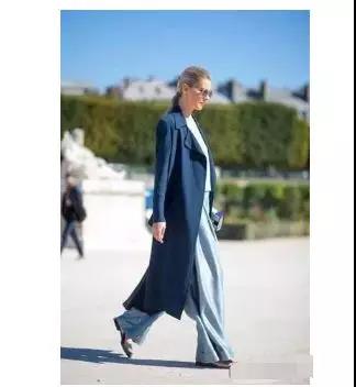 近期熱播的《完美生活》里女主角李小冉的造型就大多采取這樣的搭配,闊腿褲有時似乎有點難以挑戰,但是如果搭配大衣或風衣,在配上高跟鞋,修長的感覺立即讓你氣場十足。