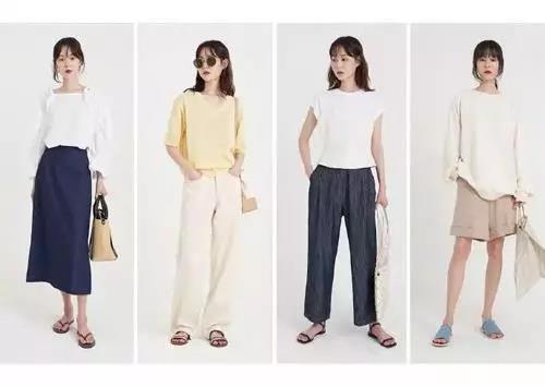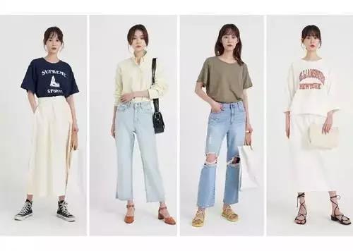 各類簡約的基礎(chǔ)款是日常搭配的主要款式,簡約過膝長裙搭配字母t恤,休閑又舒適。闊腿牛仔褲搭配襯衣或t恤,除了日常的白色,秋季各種溫柔的馬卡龍色系都是可以選擇加分的款式。