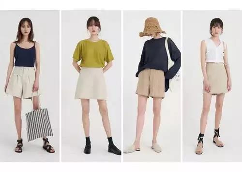 米色或駝色顯得高級又清新,駝色a字裙修飾身材又顯腿長,配白色或黑色顯質(zhì)感又高級。駝色短褲比半裙穿起來更方便,選擇短褲時闊腿的喇叭型更顯瘦。