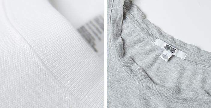 作為夏季工作服的T恤,材質大多是棉質或是混紡棉、莫代爾等一些面料。這類面料雖然親膚透氣但是穿久就容易發生變形、變松,尤其是T恤的領口或是T恤的袖口等地方,因為經常拉扯,加上洗衣服的時候這些地方會著重清洗揉搓加上一些不正確的懸掛方式所以非常容易造成T恤變形。這是這些材質的面料無法避免的事情,但是T恤領口變形變松了怎么辦?