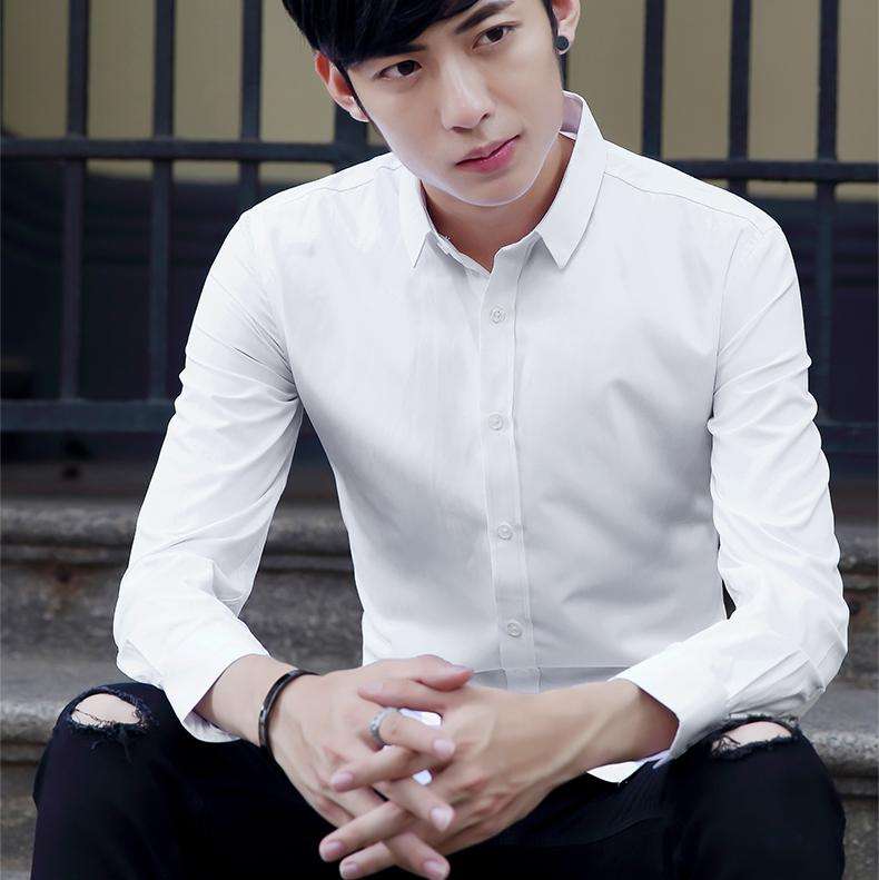 時尚帥氣的白色長袖襯衫,搭配一條藍色休閑褲是個不錯的選擇,見褲腿卷起整體搭配很有魄力。