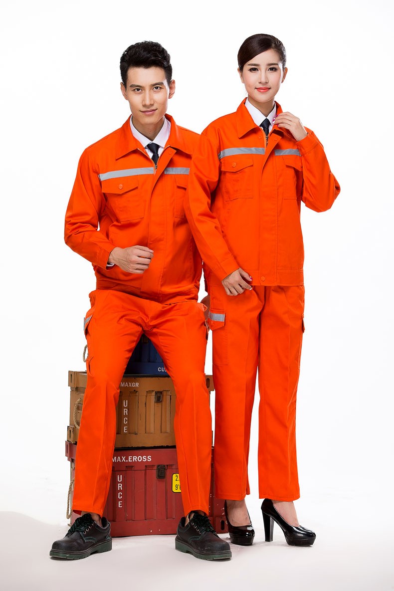環衛工人的工作服的色彩設計通常選用橙色,以此作為警戒色,產生視覺吸引力,大大增加了人們對著裝者的注意力和識別速度,以增加人的注目性, 從而明顯提高了服裝的安全系數。橙色明視度高,在工業安全用色中,橙色即是警戒色。警戒色,比較醒目、亮眼,帶有強烈的警告色彩,其作用是為了醒目、突 出、警告。