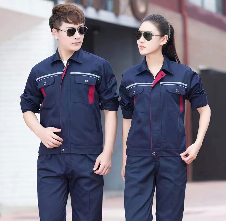 春季長袖款工作服定制,優質面輔料,全部YKK拉鏈。