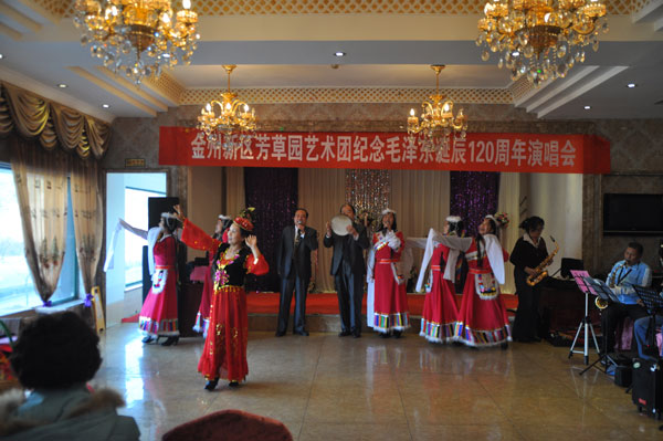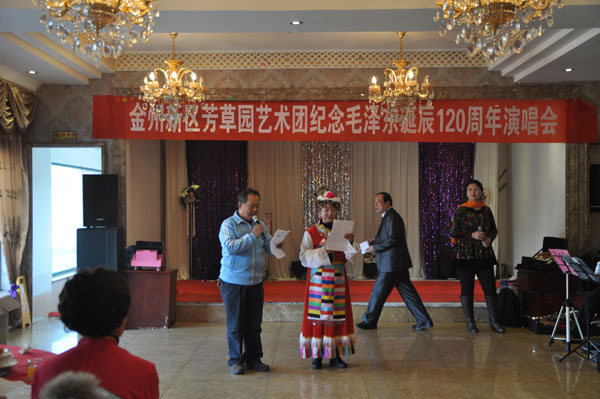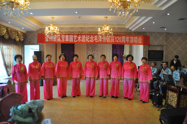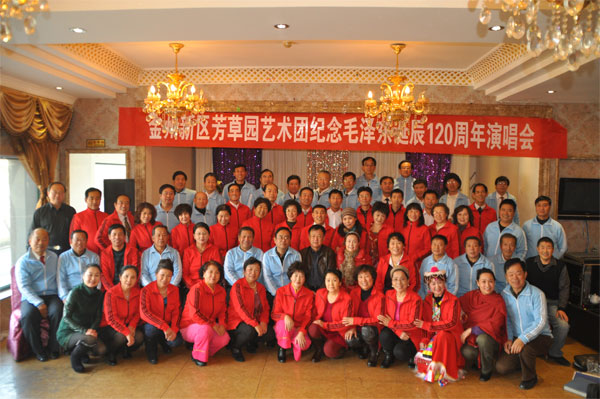 擾民的廣場(chǎng)舞?不,我們是芳草園藝術(shù)團(tuán),我們?cè)诮鹬菪聟^(qū)童牛嶺的芳草園附近演奏音樂、合唱歌曲,豐富了業(yè)余生活,但也絕不擾民。下面是我們芳草園藝術(shù)團(tuán)在2013年12月26日為紀(jì)念毛澤東誕辰120周年自發(fā)組織的演唱會(huì),請(qǐng)欣賞圖片。
