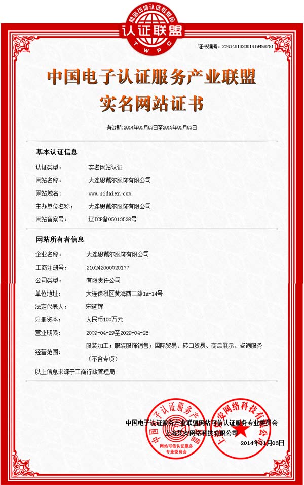為了使新老客戶訪問起來更安全、更可靠,思戴爾官網特向中國電子認證服務產業聯盟申請并通過了認證。請記住我們的唯一官方網址:www.www-93055.com