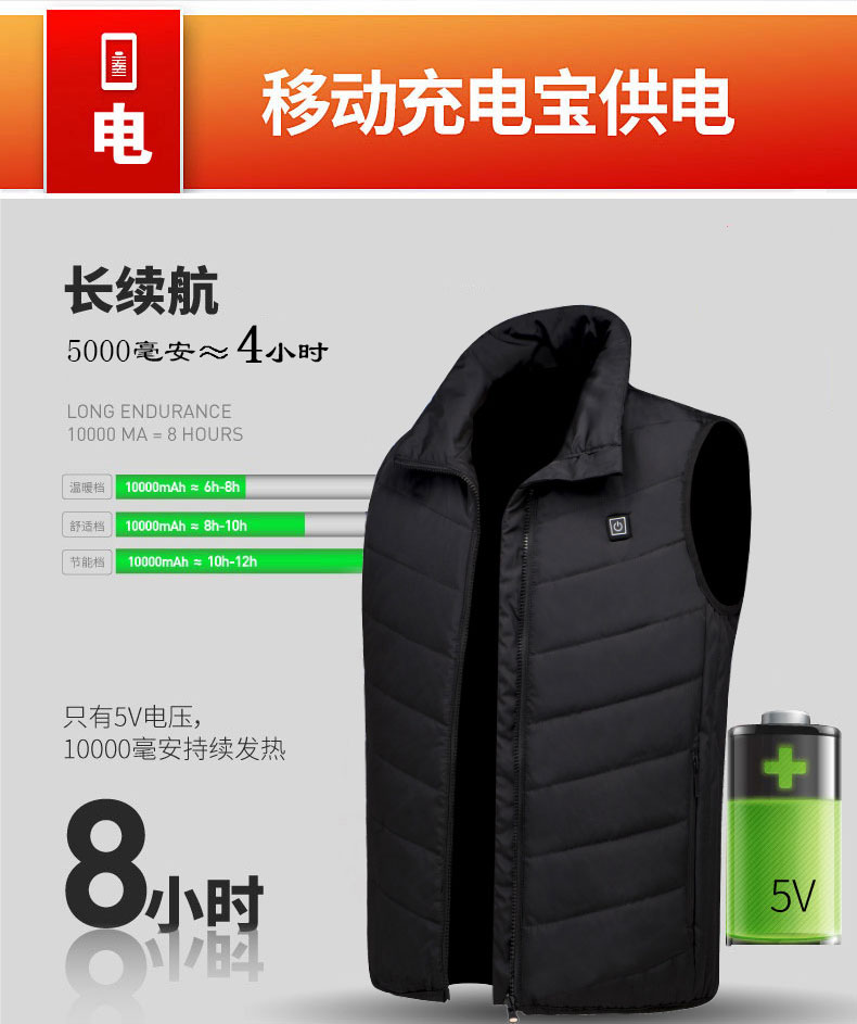 可用充電寶供電的電加熱保暖棉馬甲上市了。