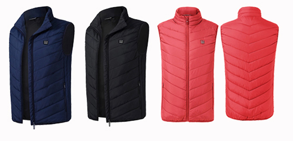 電加熱棉馬甲,3檔溫控,領子、前胸及后背均可加熱,插充電寶即可使用,10000毫安可用8小時。